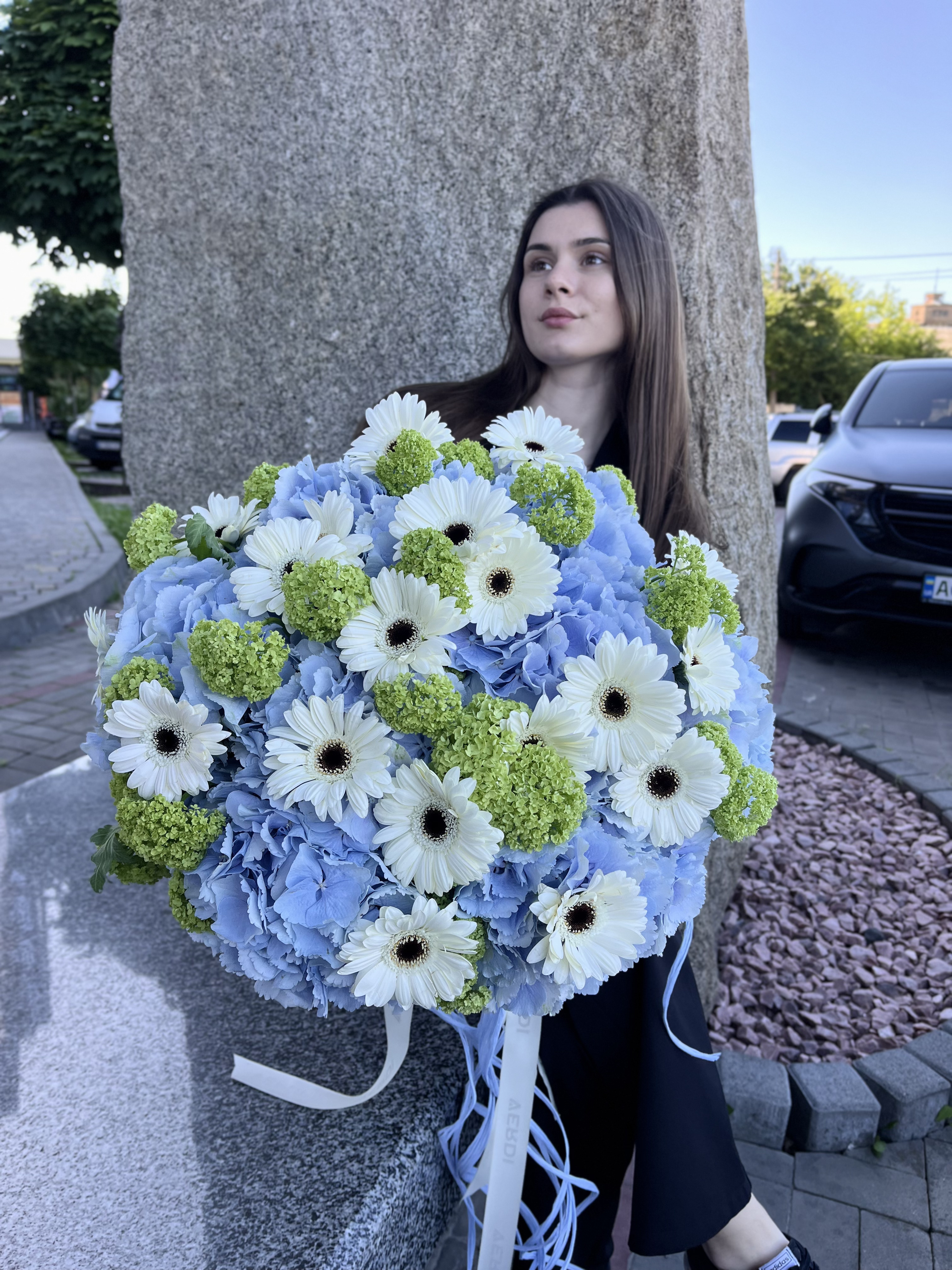Гармонійне поєднання гортензій, гербер та вібруму - ідеальний вибір для створення святкового настрою! Для зручності та захисту квітів під час доставки використовуємо коробку для транспортування, також додаємо підживку для довшого зберігання букету. Доставка по Луцьку та області.