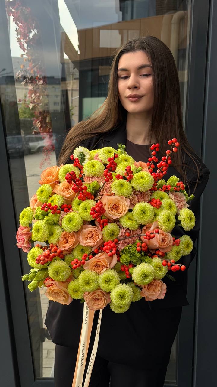 Відкрийте для себе чарівність нашого вишуканого букету! Кожна квітка обробляється, щоб створити гармонійний баланс кольорів та текстури, випромінюючи вишуканість та радість! Не зволікайте, щоб справити незабутнє враження – замовте цей приголомшливий букет сьогодні та дозвольте його елегантності говорити за себе.