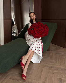 Цей розкішний букет складається з добірних свіжих троянд насиченого червоного кольору, що є безсмертною класикою у світі флористики. Висока якість кожної квітки, пружні бутони та глибокий благородний відтінок роблять цю композицію справжнім символом щирих почуттів та пристрасті. Такий подарунок ідеально підійде для коханої жінки на особливу дату, день народження, річницю або як грандіозний жест уваги без приводу. Якщо ви прагнете вразити та подарувати незабутні емоції, варто замовити букет, який говорить сам за себе. Наші свіжі квіти відрізняються особливою стійкістю, а швидка доставка квітів допоможе організувати розкішний сюрприз у найвідповідальніший момент.