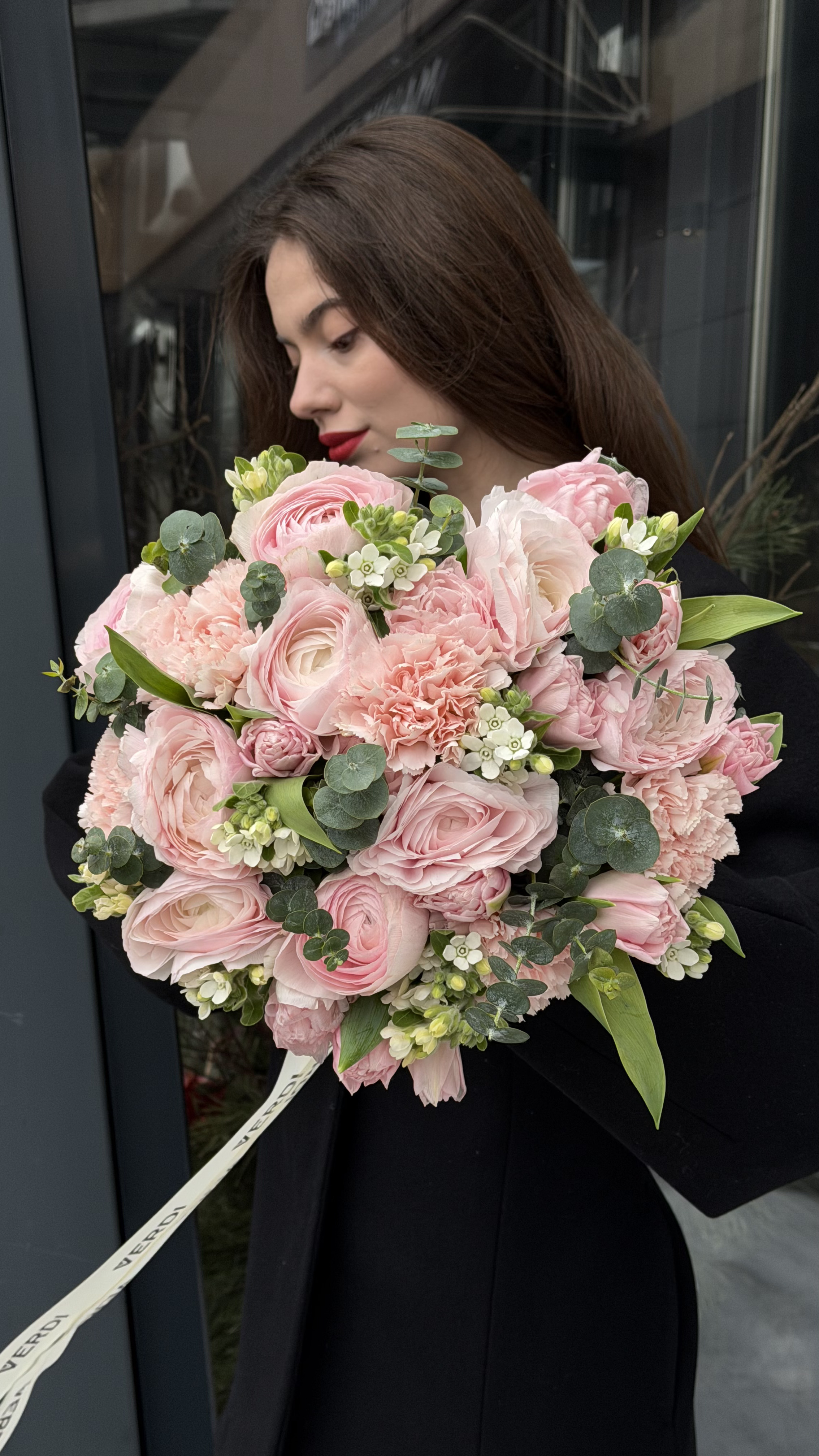 Цей неймовірно ніжний та об'ємний букет створений для справжніх поціновувачів вишуканих квіткових фактур. У складі композиції — делікатні рожеві ранункулюси з безліччю тонких пелюсток, пишні сортові гвоздики та витончені суцвіття білого орнітогалуму. Гілочки евкаліпту додають букету природної динаміки та приємного свіжого аромату. Така романтична композиція стане ідеальним подарунком для дівчини на день народження, річницю або просто щоб висловити свою ніжність. Якщо ви хочете замовити букет, який виглядає водночас розкішно та тендітно, цей варіант — ідеальний вибір. Наші свіжі квіти гарантовано подарують гарний настрій, а швидка доставка квітів допоможе зробити ваш сюрприз вчасним і незабутнім.