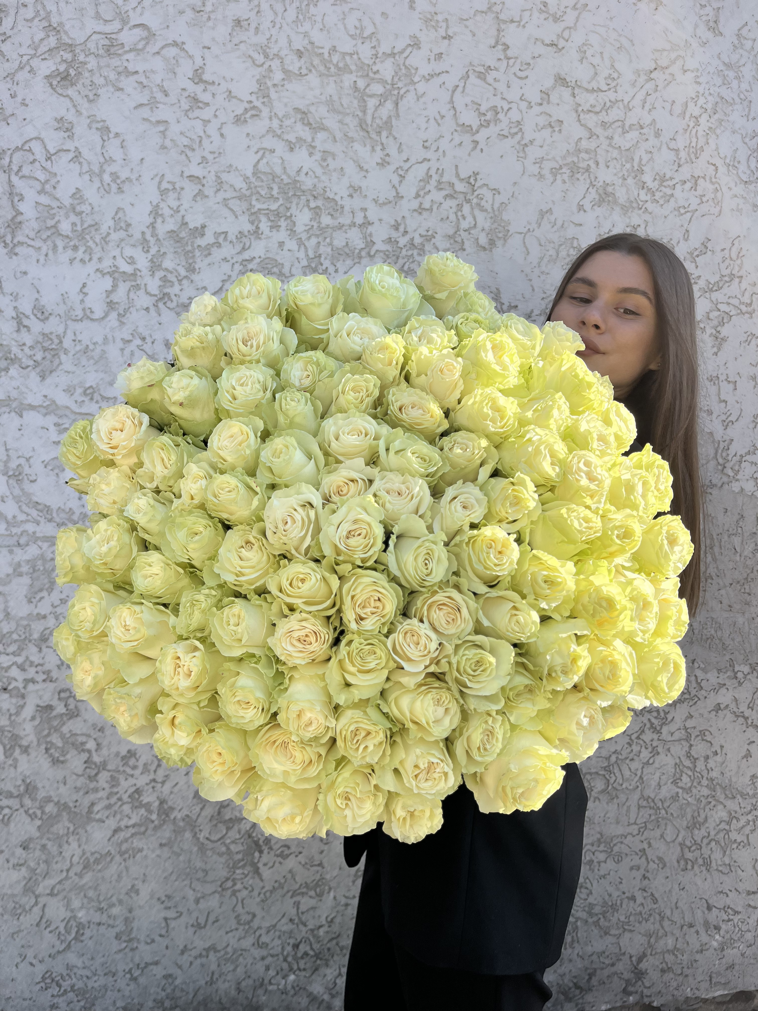 Розкішний монобукет з одноголової троянди Mondial. Спеціальна коробка забезпечує безпечну доставку, а підживка - тривалу свіжість квітів. Доставка по Луцьку та області.