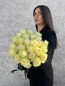 Розкішний монобукет з одноголової троянди Mondial. Спеціальна коробка забезпечує безпечну доставку, а підживка - тривалу свіжість квітів. Доставка по Луцьку та області.