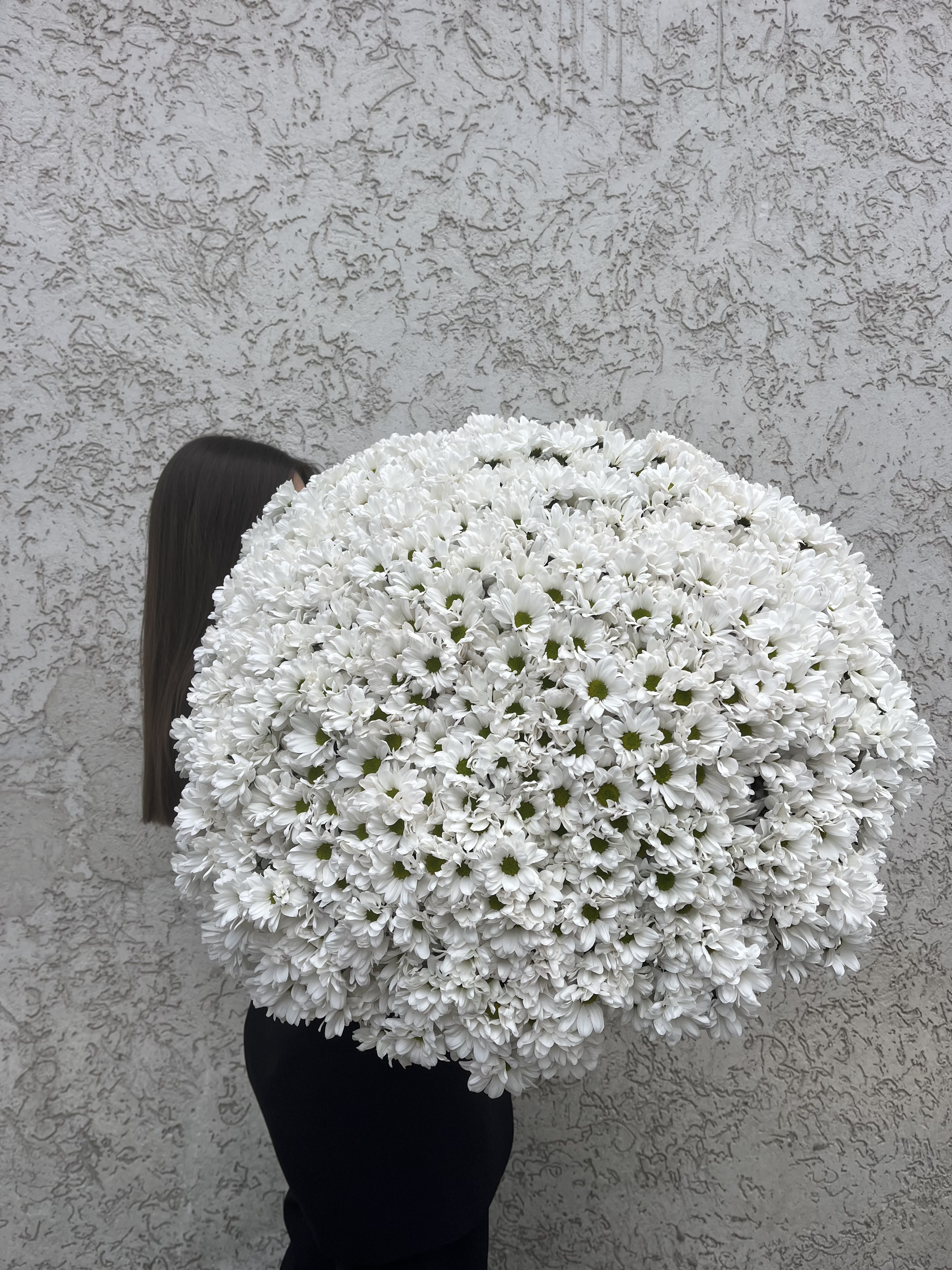 Ніжний монобукет з хризантеми Kennedy White. Доставляємо у транспортній коробці, що гарантує цілісність квітів. Підживка у комплекті подовжує свіжість квітів. Доставка по Луцьку та області.