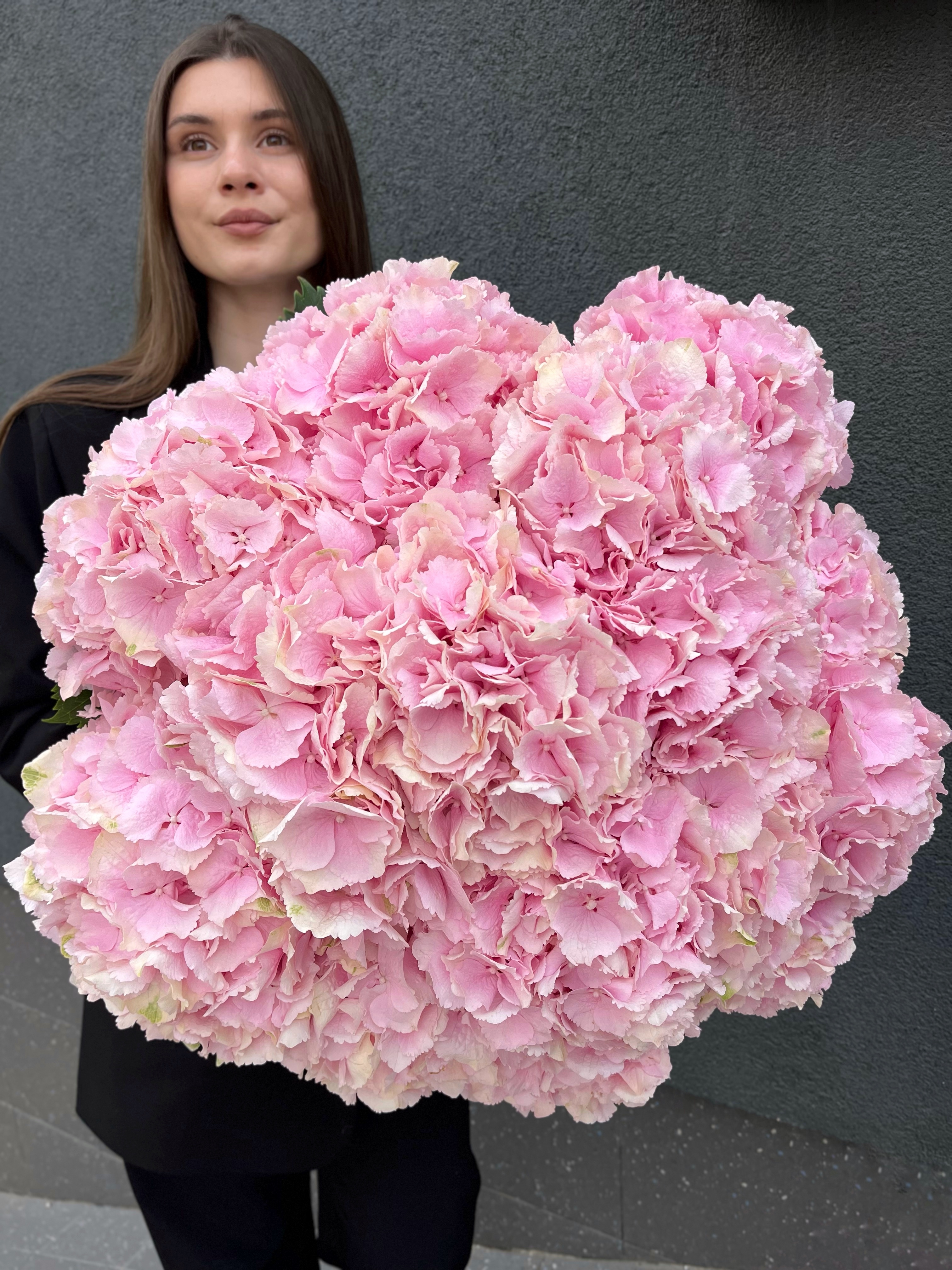 Розкішний монобукет з великих суцвіть гортензії Verena. Доставляємо в спеціальній коробці, що надійно захищає квіти. Підживка у комплекті подовжує свіжість. Доставка по Луцьку та області.