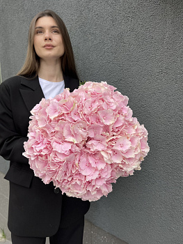Розкішний монобукет з великих суцвіть гортензії Verena. Доставляємо в спеціальній коробці, що надійно захищає квіти. Підживка у комплекті подовжує свіжість. Доставка по Луцьку та області.