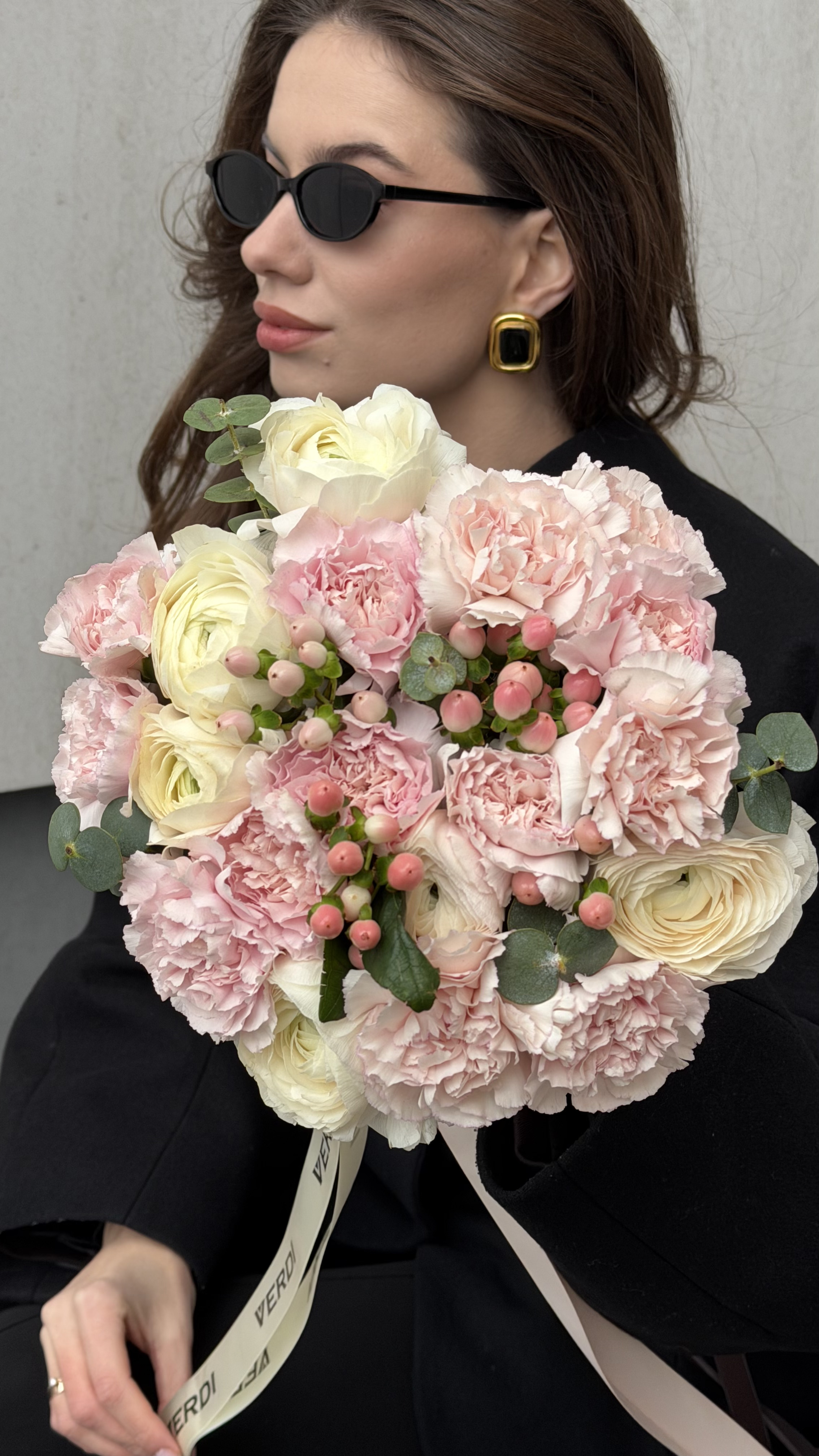 Цей витончений букет випромінює ніжність завдяки поєднанню пастельних відтінків та цікавих фактур. До складу входять багатошарові білі ранункулюси, пухнасті рожеві гвоздики та грайливі рожеві ягоди гіперікуму. Гілочки евкаліпту додають композиції природності та легкого свіжого аромату. Такий букет стане ідеальним подарунком для дівчини на побачення, мами або близької людини, щоб висловити найтепліші почуття. Якщо ви шукаєте естетичний подарунок, рекомендуємо замовити букет у цих м’яких тонах. Наша доставка квітів працює, щоб ви могли купити квіти зручно, а одержувач отримав лише свіжі квіти, що будуть довго радувати око.