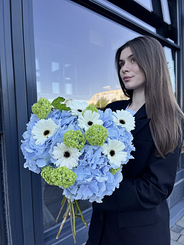 Гармонійне поєднання гортензій, гербер та вібруму - ідеальний вибір для створення святкового настрою! Для зручності та захисту квітів під час доставки використовуємо коробку для транспортування, також додаємо підживку для довшого зберігання букету. Доставка по Луцьку та області.
