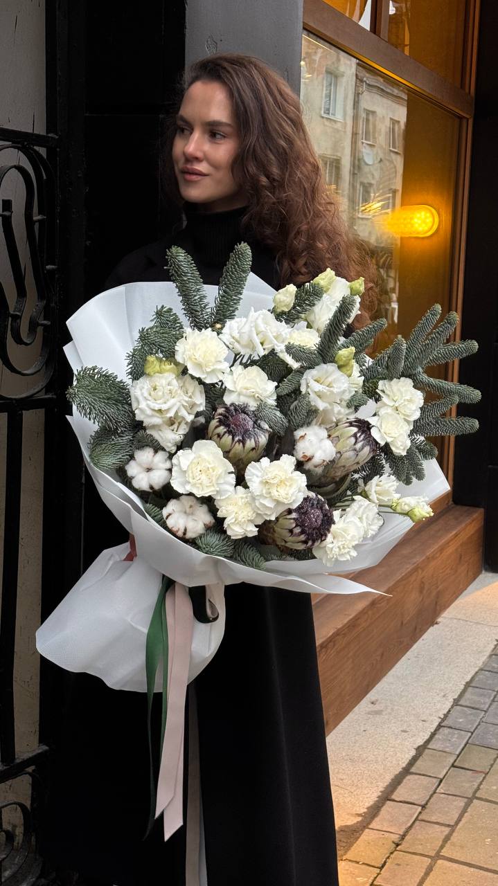 Еустома Alissa White додає нотку чистоти та витонченості, тоді як протея Magic Niobe носить сміливий, екзотичний шарм.