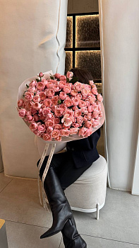 Цей розкішний та неймовірно об'ємний букет складається з великої кількості свіжих кущових троянд ніжного персикового відтінку з вишуканим піоноподібним розкриттям бутона. Композиція оформлена у лаконічне багатошарове пакування світлого кольору, що підкреслює теплий тон пелюсток, та доповнена фірмовими стрічками. Такий подарунок ідеально підійде для особливої події: пропозиції руки та серця, ювілею, дня народження коханої дівчини або як вишуканий жест вдячності для мами. Якщо ви бажаєте вразити близьку людину та замовити букет, який виглядає по-справжньому королівським, ці свіжі квіти стануть найкращим вибором. Наша професійна доставка квітів подбає про те, щоб цей неймовірний оберемок троянд був доставлений вчасно та у бездоганному стані.