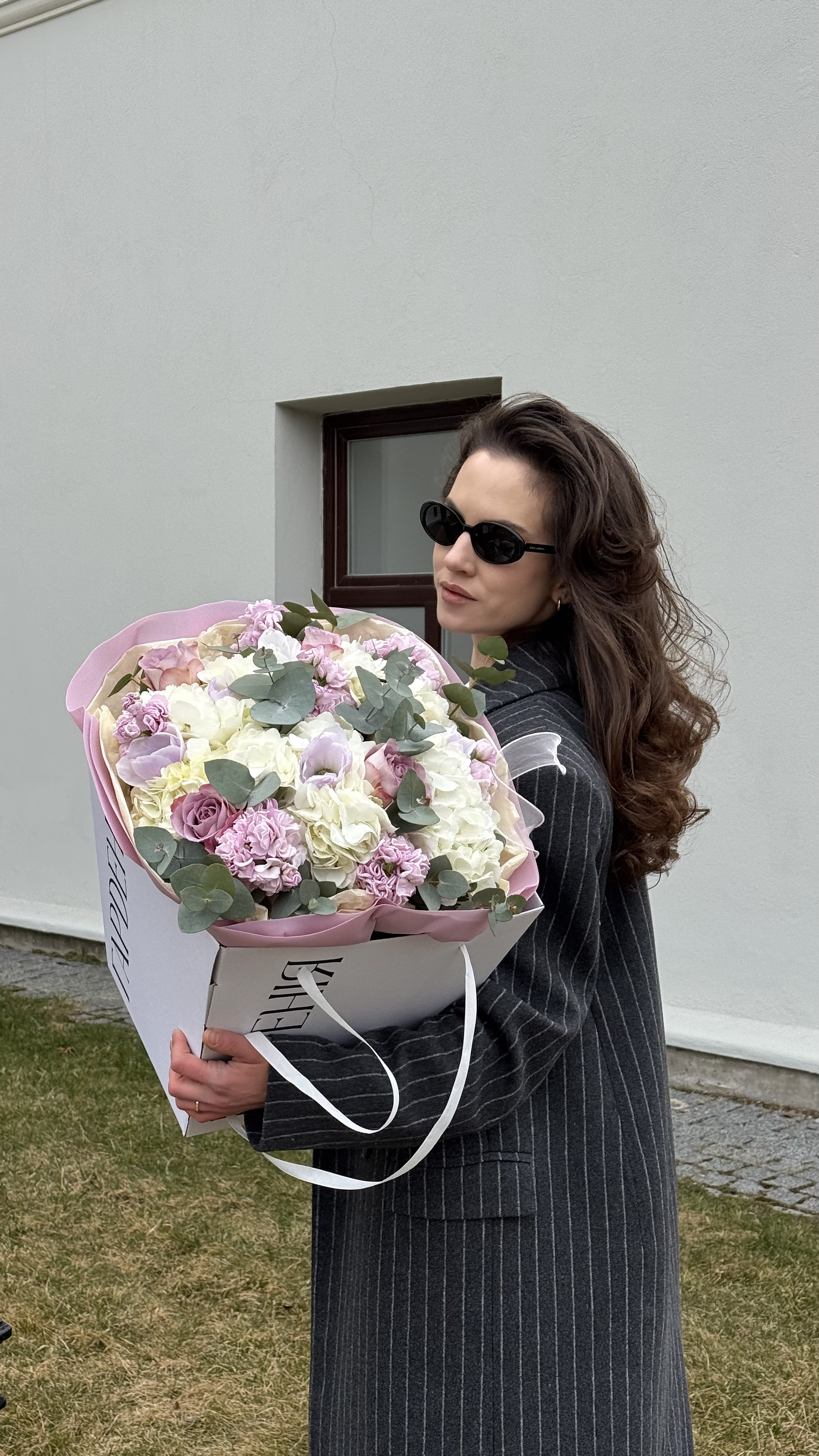 Ця елегантна та об'ємна композиція — втілення ніжності та стилю. Основою букета слугують пишні суцвіття білої гортензії, які гармонійно поєднуються з витонченими сортовими трояндами бузкових та пудрових відтінків, фактурними гвоздиками та гілочками сріблястого евкаліпту. Особливістю цього варіанту є презентація: квіти оформлені у декоративний папір і поміщені у стильну та зручну білу фірмову сумку-пакет з ручками. Такий подарунок ідеально підійде для коханої дівчини, дружини або мами на день народження, річницю чи весілля. Завдяки пакуванню, одержувачу буде зручно транспортувати букет. Якщо ви хочете замовити букет, який вразить своїм об'ємом та вишуканою кольоровою гамою, цей варіант ідеальний. Наша швидка доставка квітів допоможе вам привітати близьких вчасно, гарантуючи, що вони отримають найсвіжіші квіти.