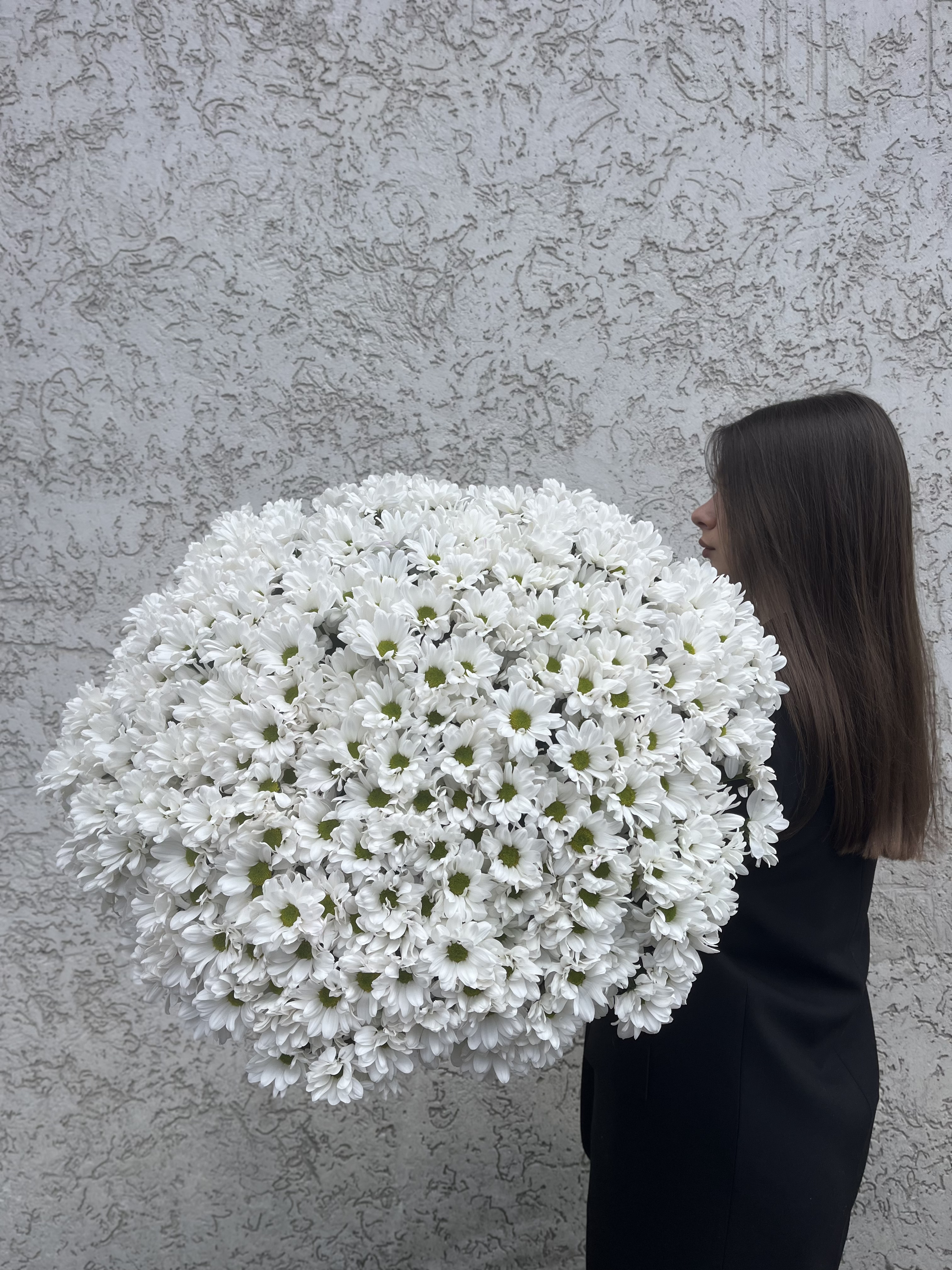 Ніжний монобукет з хризантеми Kennedy White. Доставляємо у транспортній коробці, що гарантує цілісність квітів. Підживка у комплекті подовжує свіжість квітів. Доставка по Луцьку та області.