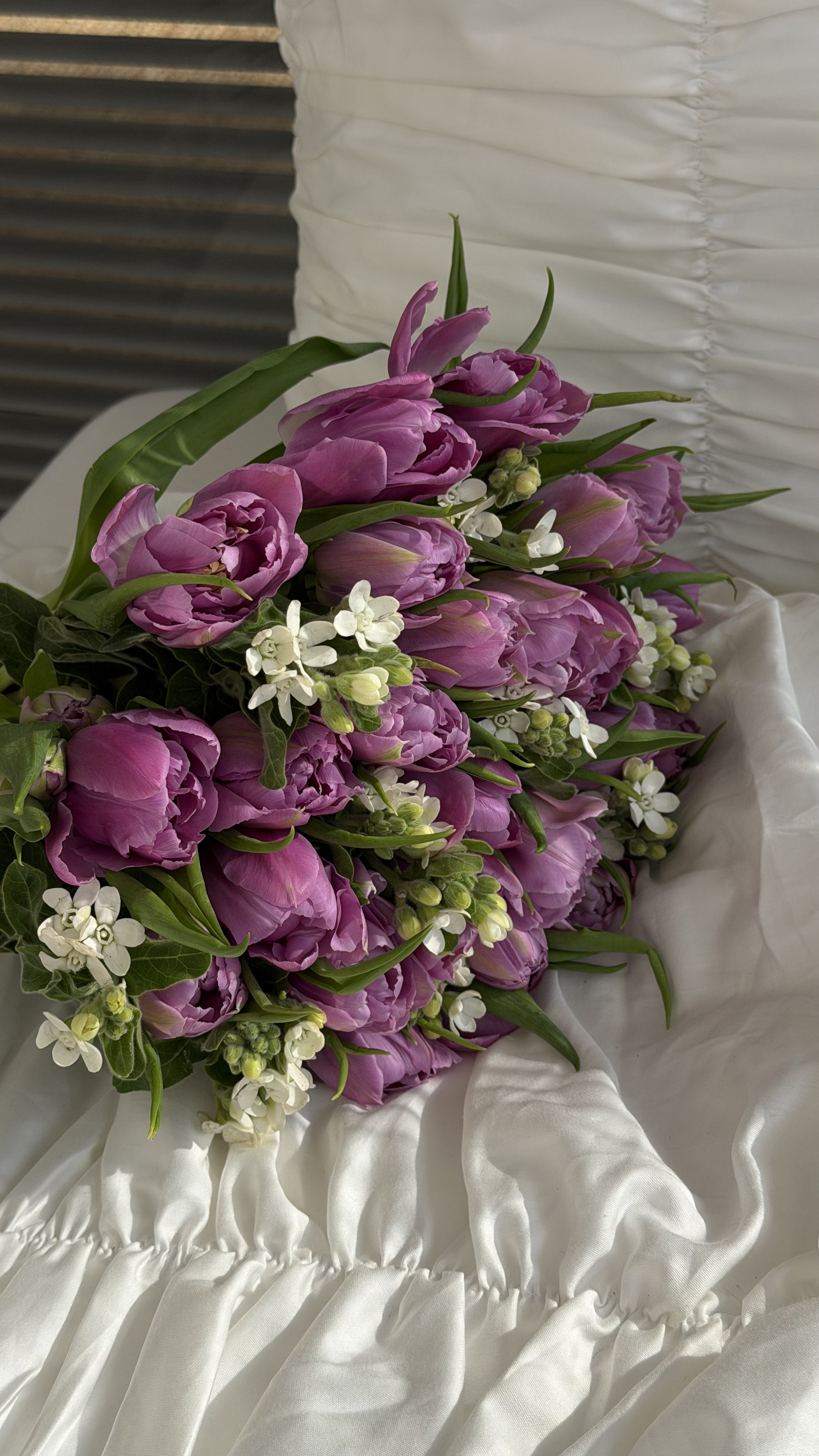 Ця витончена весняна композиція поєднує в собі розкішні півонієподібні тюльпани насиченого бузкового відтінку та ніжні зірчасті квіти білого оксипеталуму. Багатошарові бутони тюльпанів створюють вражаючий об'єм, а дрібні суцвіття оксипеталуму додають букету особливої легкості, фактурності та романтичного шарму. Такий стильний мікс стане ідеальним подарунком для коханої дівчини, дружини або подруги на день народження, річницю або просто як вишуканий знак уваги. Якщо ви бажаєте замовити букет, який виглядає сучасно та водночас ніжно, цей варіант — чудовий вибір. Наші свіжі квіти довго зберігатимуть свій вигляд, а професійна доставка квітів допоможе вам зробити приємний сюрприз близькій людині вчасно.